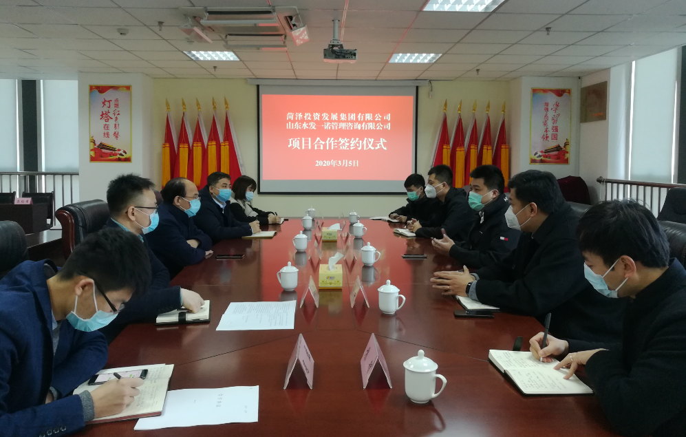 2020年3月5日上午,菏澤投資發(fā)展集團(tuán)有限公司與山東水發(fā)一諾管理咨詢(xún)有限公司項(xiàng)目合作簽約儀式在菏投集團(tuán)公司第二會(huì)議室舉行,菏投集團(tuán)公司黨委副書(shū)記、總經(jīng)理丁萬(wàn)國(guó)與水發(fā)一諾董事長(zhǎng)商亮代表合作雙方簽訂《項(xiàng)目合作協(xié)議》。菏投集團(tuán)黨委書(shū)記、董事長(zhǎng)徐文芹,黨委委員、副總經(jīng)理肖培飛,水發(fā)全程咨詢(xún)集團(tuán)有限公司副總經(jīng)理張世朝,水發(fā)一諾董事長(zhǎng)商亮,總經(jīng)理劉建勛等有關(guān)人員參加了座談與簽約儀式。