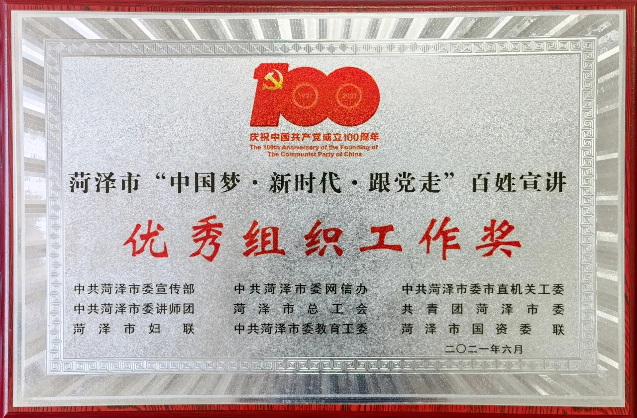 菏投集團(tuán)榮獲菏澤市“中國夢·新時代·跟黨走”百姓宣講“優(yōu)秀組織工作獎”