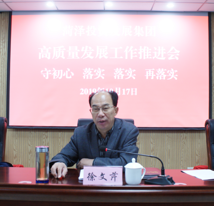 為貫徹落實“不忘初心、牢記使命”主題教育的總要求,確保圓滿完成全年經(jīng)營目標,10月17日上午,菏澤投資發(fā)展集團高質(zhì)量發(fā)展工作推進會在公司第六會議室召開。公司黨委書記、董事長徐文芹主持會議并講話,公司市管干部、公司合署辦公機構(gòu)全體人員、各企業(yè)中層副職以上干部參加了會議。
