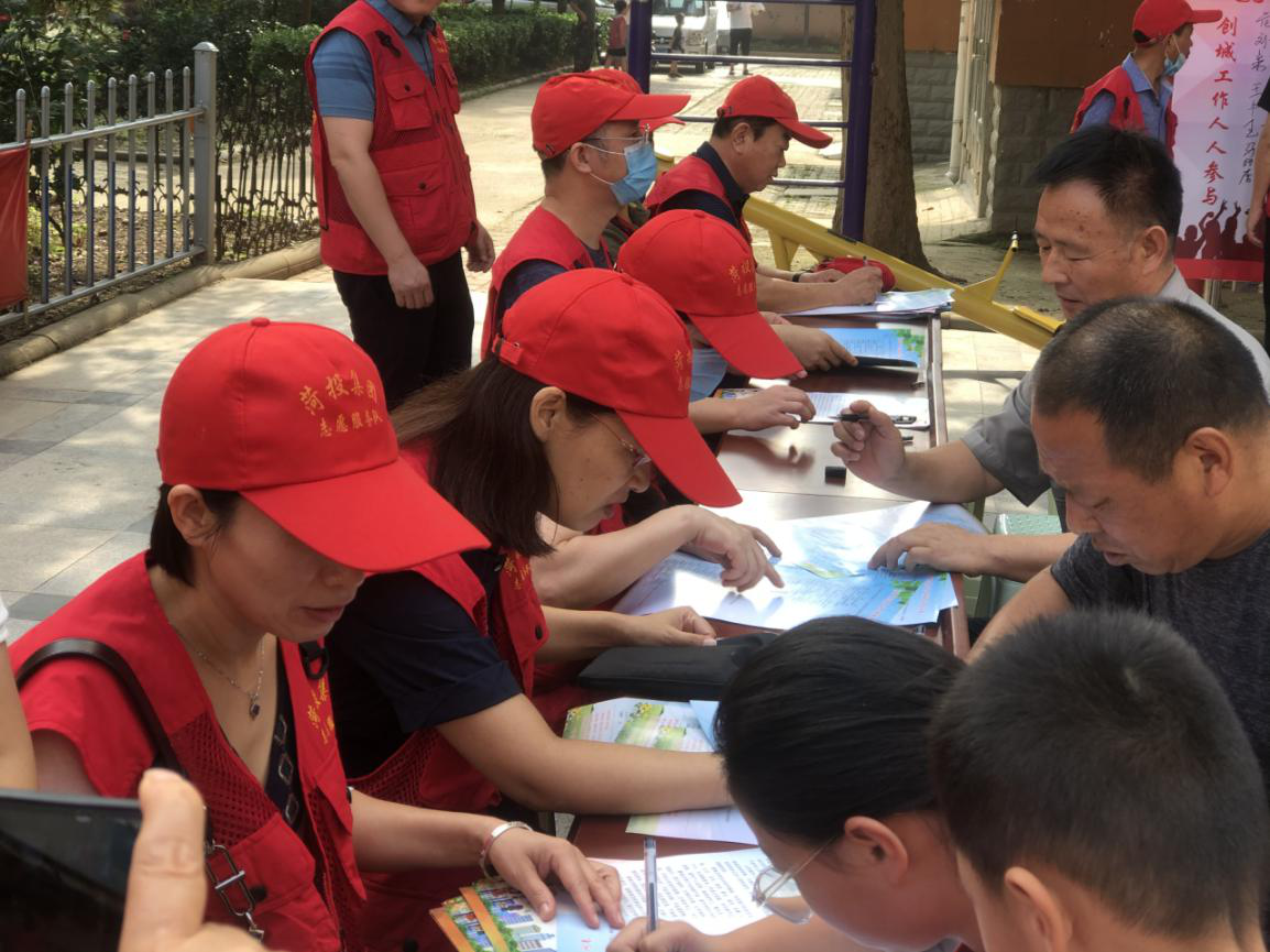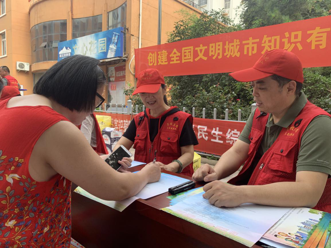 為進一步提高創(chuàng)建全國文明城市群眾知曉率、參與率、滿意率,營造濃厚的創(chuàng)城氛圍,8月22日上午,菏澤投資發(fā)展集團有限公司黨委副書記、總經理、創(chuàng)建全國文明城市、國家衛(wèi)生城市工作領導小組組長丁萬國,黨委副書記、創(chuàng)建全國文明城市、國家衛(wèi)生城市工作領導小組副組長郭菏玉帶領市管干部以普通黨員志愿者身份走進公司包聯的吳堤口社區(qū)下轄小區(qū)文心花園開展“創(chuàng)建全國文明城市知識有獎競答活動”,為助力我市創(chuàng)建全國文明城市再添光彩。