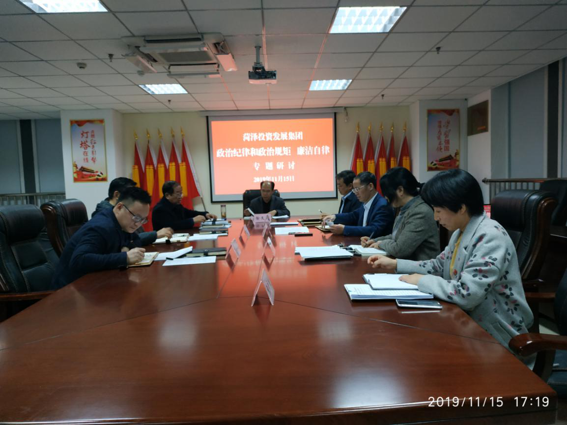 為扎實(shí)推進(jìn)“不忘初心、牢記使命”主題教育,根據(jù)公司黨委工作安排,11月15日,菏澤投資發(fā)展集團(tuán)有限公司領(lǐng)導(dǎo)班子黨員成員圍繞“政治紀(jì)律和政治規(guī)矩”“廉潔自律”進(jìn)行專題研討。