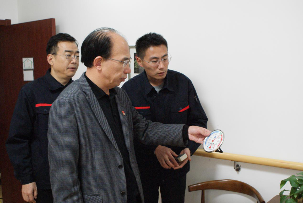 隨后,公司黨委班子走進(jìn)社區(qū)養(yǎng)老院,詳細(xì)詢問了解了老人身體情況、生活狀況和供暖情況,并與老人們進(jìn)行親切交談,現(xiàn)場(chǎng)測(cè)試養(yǎng)老院內(nèi)溫度,確保溫度適宜。同時(shí),察看了都莊社區(qū)換熱站內(nèi)供熱設(shè)備運(yùn)行情況,確保每家每戶的供暖服務(wù)持續(xù)平穩(wěn)高效。