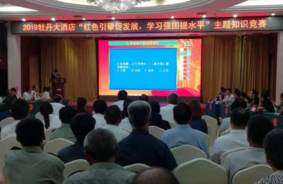 為了隆重紀(jì)念新中國(guó)成立70周年,進(jìn)一步激發(fā)酒店廣大黨員職工愛(ài)黨、愛(ài)國(guó)、愛(ài)人民的工作熱情,提升酒店黨組織力量,檢驗(yàn)前一階段學(xué)習(xí)效果,8月13日下午在酒店三樓多功能廳內(nèi)開(kāi)展了“紅色引擎促發(fā)展,學(xué)習(xí)強(qiáng)國(guó)提水平”主題知識(shí)竟賽活動(dòng)。