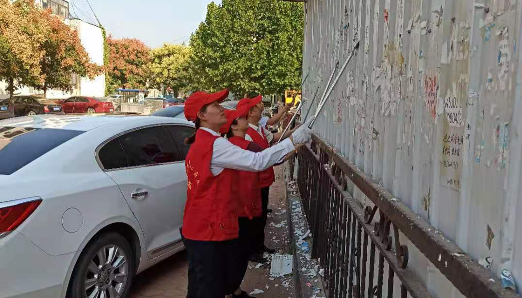 2019年9月22日星期天下午,牡丹大酒店全體在崗黨員放棄公休時間,到和平社區(qū)家屬院參加志愿者服務(wù)活動,志愿者領(lǐng)隊高舉牡丹大酒店店旗走在最前面,參加義務(wù)勞動的同志身穿紅色志愿者馬甲,頭戴志愿者小紅帽,志氣高揚,列隊齊整。為做好這次志愿者服務(wù),黨員分成三個志愿者小組,第一小組人員深入社區(qū)住戶,發(fā)放“雙城同創(chuàng)”宣傳資料和倡議書。第二小組人員手持鐵鍬、鐮刀到社區(qū)綠化帶清除亂石雜草;第三小組人員手拿清潔工具清掃小區(qū)街道,手握小鏟子清理小區(qū)樓梯走廊過道內(nèi)亂貼亂畫的小廣告。志愿者黨員盡職盡責,熱情高漲,有的同志在在清除小廣告時汗流浹背,有的同志用鐵鍬鏟草時雙手磨出了血泡,但他們都奮勇爭先,堅持到底。活動結(jié)束時,大家滿身沾滿塵土,有些疲憊,但回望清掃一新的小區(qū),心理有一種“甜滋滋”的滿足。