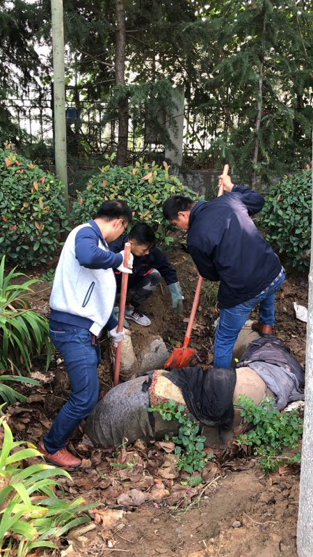 本著節(jié)約工程費(fèi)用的原則,結(jié)合維修實(shí)際需要,能自修的絕不外修。菏澤市技術(shù)監(jiān)督局即將面臨用汽需求,但仍有一段管道尚存問題,維修迫在眉睫。因管道構(gòu)造復(fù)雜,機(jī)械開挖難度大,費(fèi)用高,永恒蒸汽客服部決定自行人工開挖溝槽。 2019年10月8日,永恒蒸汽公司客戶服務(wù)部帶齊裝備工具來到現(xiàn)場,擼起袖子埋頭干,一個鏟子一個坑,大家輪流作業(yè),一刻不停。秋風(fēng)漸冷,大家干的熱火朝天。