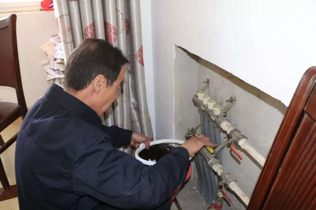 14日下午,在兩館小區(qū),菏澤永恒熱力有限公司運(yùn)營管理部二部一組管理員馮自占正在進(jìn)行供暖管道的搶修工作。“昨天下午4點(diǎn)在巡查過程中發(fā)現(xiàn),小區(qū)樓道內(nèi)的一根供暖管道出現(xiàn)大面積漏水,經(jīng)過及時(shí)搶修,供暖管道恢復(fù)了正常運(yùn)行。”